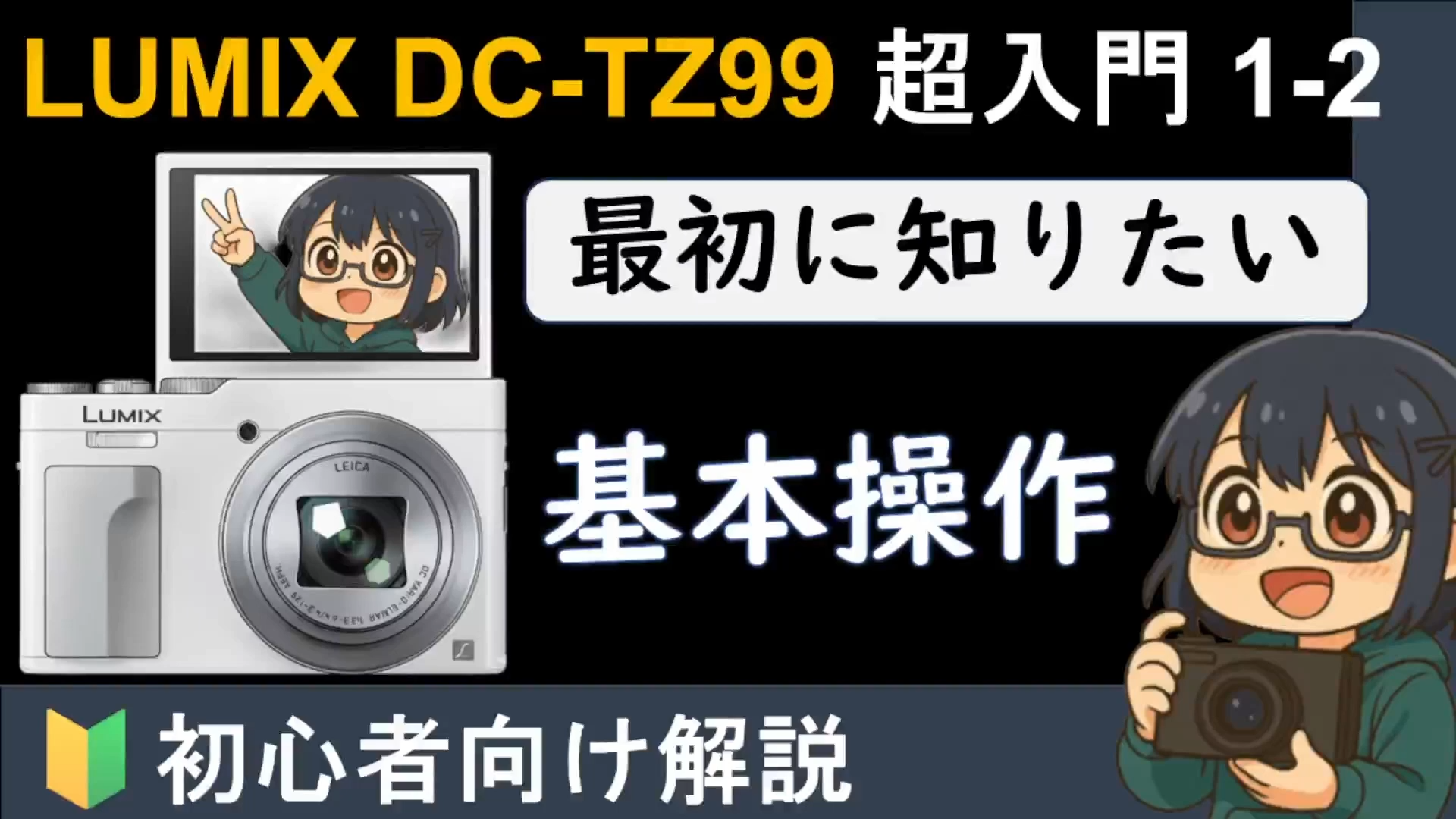 今回は、「LUMIX DC-TZ99」を初めて使う人向けに、知っておきたい基本操作について解説します。(以下動画でも解説していますので、併せてご活用ください)