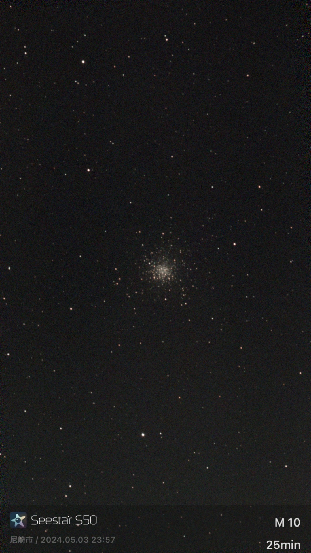 ちなみに、SeeStar S50で撮影したM10が以下です。M10のほうが星が密集しているように見えます。