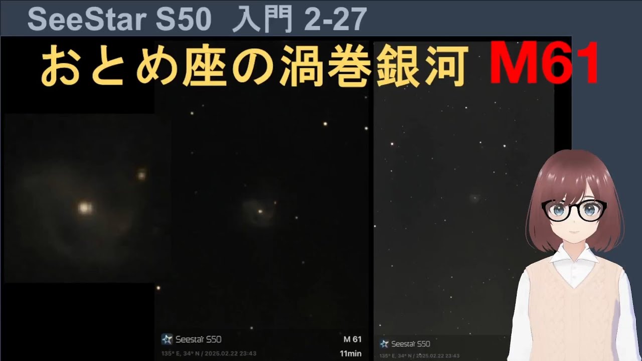 メシエ天体M61(NGC 4303)をSeeStar S50で簡単に撮影・画像処理する方法と結果について解説します。
